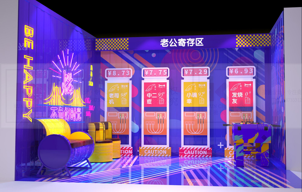 ●以加油站為概念原型,把通道打造汽車加油站主題的男性休息區(qū),增加趣味性